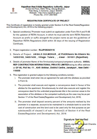 Enjoy the privilege of living in an independent plot surrounded by greens in a secure and gated community. Welcome to Ansals Gulmohar, Alwar, a premium plotted development spread across 2.28 acres approx. amidst all modern amenities. Ansals Gulmohar ensures a much-awaited and desired lifestyle.