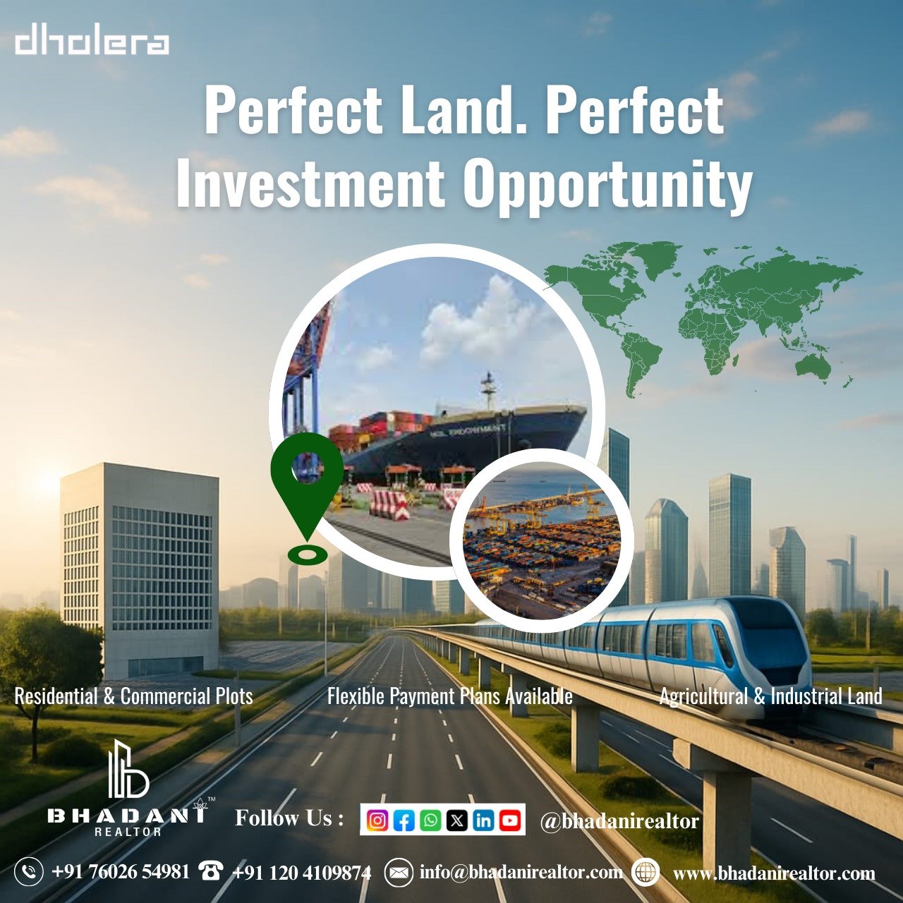 With plot booking in Dholera, buyers are not only investing in land but also in a future shaped by advanced connectivity, industrial expansion, and residential demand. BHADANI REALTOR has been helping clients secure strategic plots, building brand awareness by connecting investors to opportunities that matter.
